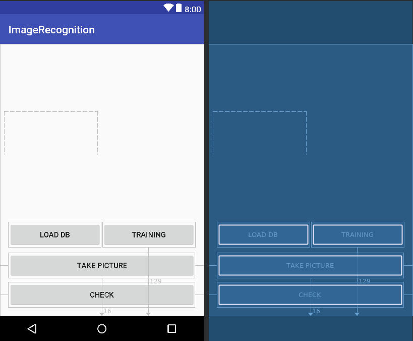 Then we need to link all the created buttons in the Main Activity of our app in order to be able to use them.Two methods are defined: one to initialize the elements of our interface, the other one to initialize the listeners of each button. Then, the two methods are called inside the onCreate.