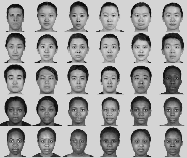 For reasons of simplifications we are going to assume that the database is just a folder with a given set of color images of any dimension not bigger than 2 MB (simply for a speed time reason, especially on big databses). It's noticeable also that in a database there can be more than one face of a same person; each image should have the same light exposition and each face should be aligned. In our example we are going to take as database set 20 images made of 4 people in 5 different position.